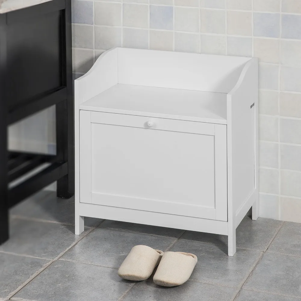 استعارات من SoBuy FSR51-W خزانة حمام سلة الغسيل صندوق دمي الصدر رف تخزين